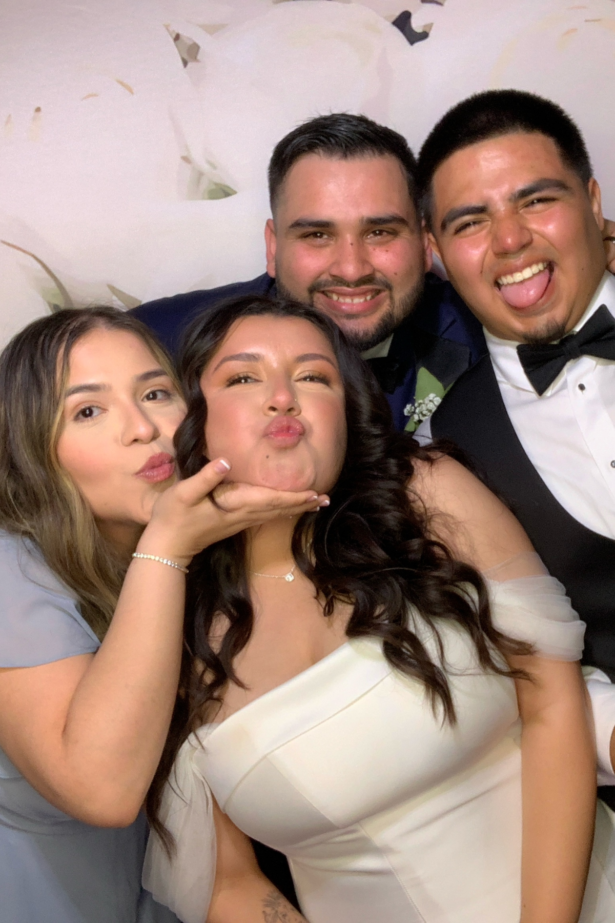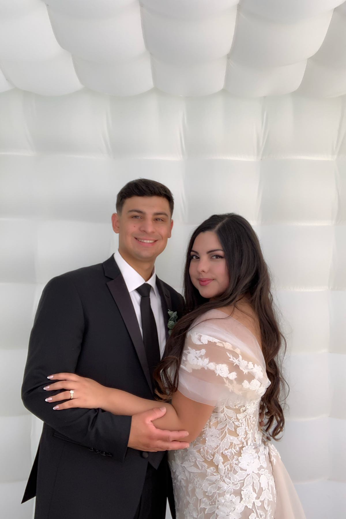 Elegant black and white wedding photo captured with Core Memories Glam Booth — our signature studio-style setup for timeless event portraits.